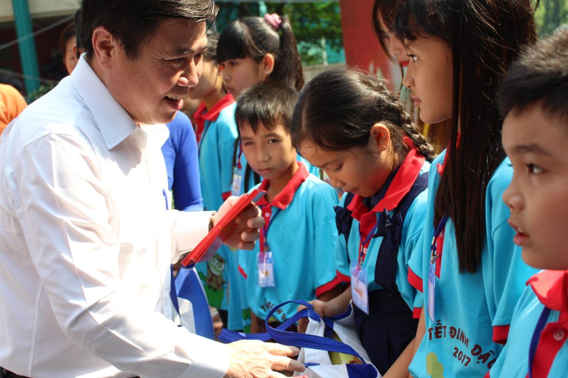 Ông Phạm Đức Hải, Phó Chủ tịch Hội đồng Nhân dân Thành phố lì xì các em nhân dịp tết Nguyên đán Đinh Dậu.