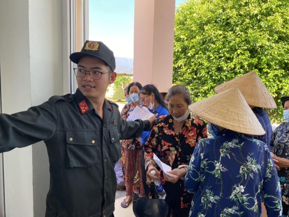 ba con xep hang cho toi luot kham benh nhan thuoc mien phi tu doan
