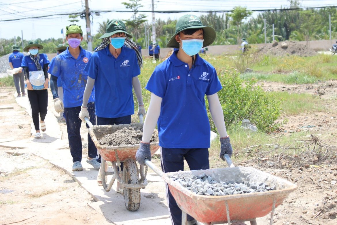 Với tinh thần nhiệt huyết, quá trình làm việc của các chiến sĩ Mùa hè xanh được phối hợp một cách nhịp nhàng từ việc đổ đất làm nền, xúc cát, đá vào thùng đến trộn xi măng. Dẫu công việc có phần cực nhọc và thời tiết gay gắt, trên những gương mặt lấm lem bùn đất, mồ hôi vẫn không thiếu đi những nụ cười.