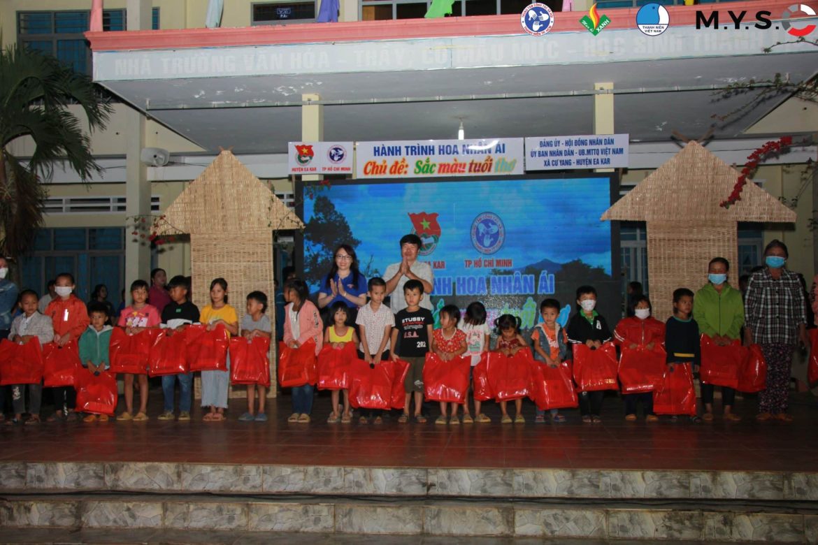 Trong chiến dịch tình nguyện hè năm 2022, các bạn tình nguyện viên của Trung tâm Công tác xã hội thanh niên TP.Hồ Chí Minh triển khai thực hiện chương trình “Hành trình hoa nhân ái” năm 2022 với chủ đề Sắc màu tuổi thơ với nhiều nội dung phong phú, đa dạng, cụ thể như sơn mới gần 100 phòng học, tổ chức khám bệnh và phát thuốc cho hơn 300 người dân là người đồng bào, có hoàn cảnh khó khăn; tổ chức các gian hàng ẩm thực, gian hàng trò chơi, siêu thị 0 đồng… phục vụ cho người dân và các em học sinh.