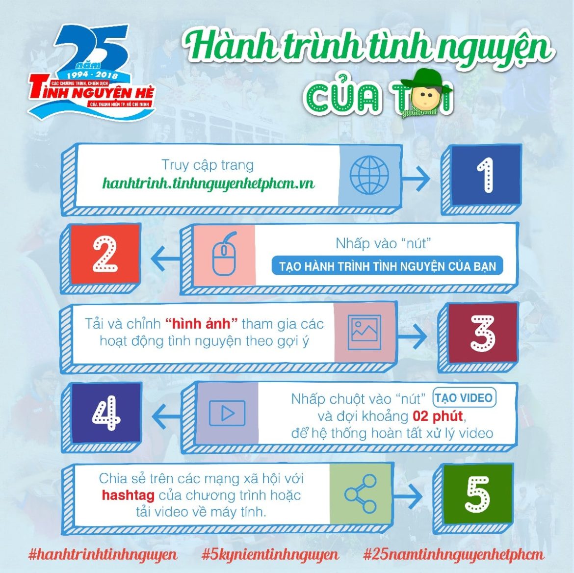 Sản phẩm tuyên truyền Hành trình tình nguyện của tôi là một phương thức tuyên truyền mới do Thành Đoàn TP. Hồ Chí Minh thực hiện nhân kỷ niệm 25 năm các chương trình, chiến dịch tình nguyện hè của thanh niên Thành phố (1994 – 2018).