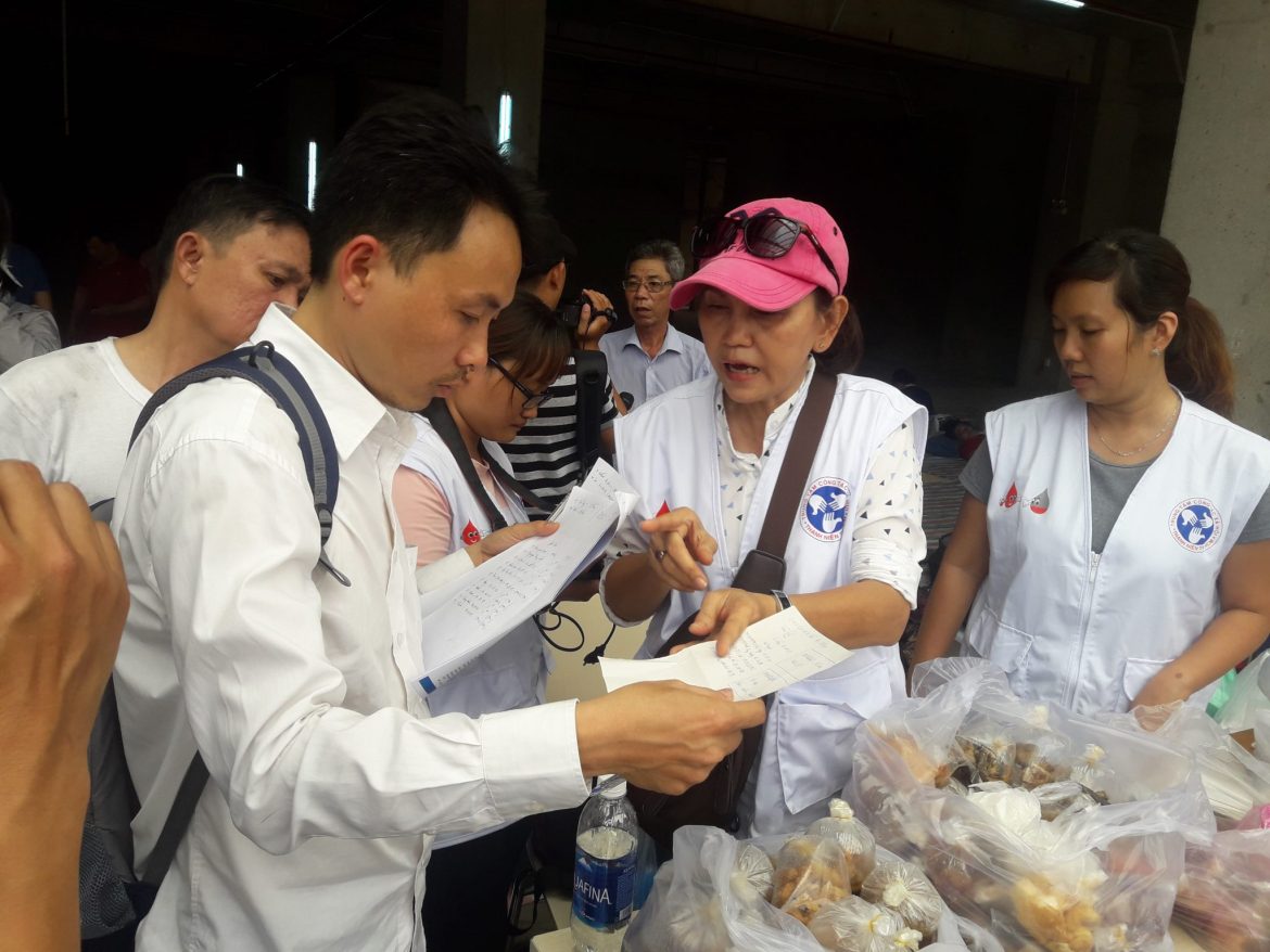 Các bạn tình nguyện viên hỗ tiếp nhận và hỗ trợ người dân trong vụ hỏa hoạn tại chung cư Carina, trên đường Võ Văn Kiệt, Quận 8