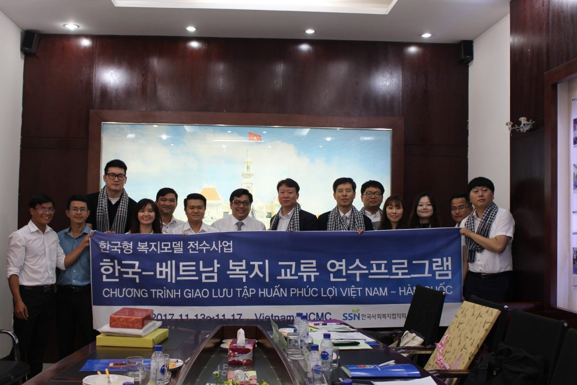 Tiếp đoàn của Hội đồng phúc lợi xã hội Hàn Quốc có anh Dương Ngọc Tuấn – Giám đốc Trung tâm Công tác xã hội Thanh niên Thành phố, anh Võ Minh Hoàng – Phó Trưởng phòng Bảo trợ xã hội (thuộc sở Lao động – Thương binh và Xã hội Thành phố). Về đại diện phía Hàn Quốc do ông Kim Min Woo – Giám đốc Hội đồng quốc gian về phúc lợi xã hội Hàn Quốc làm trưởng đoàn.