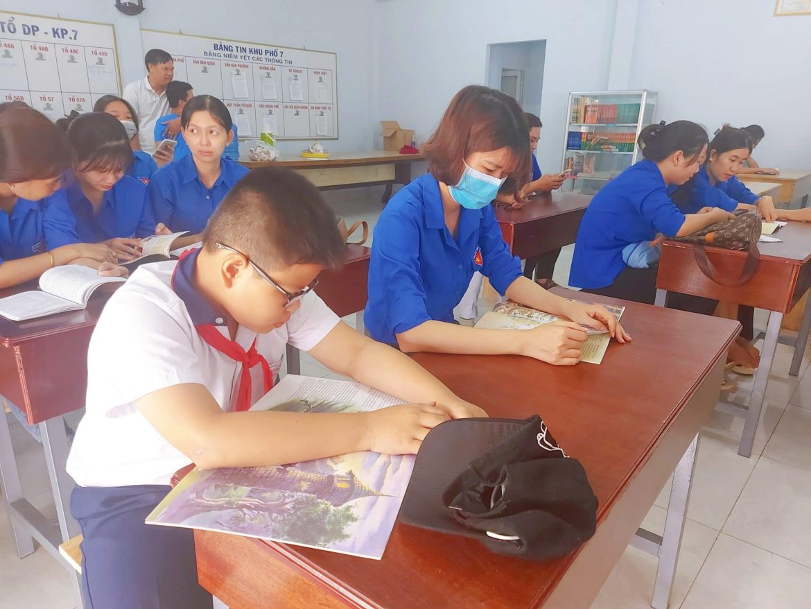 Các bạn Đoàn viên, thanh niên và các em thiếu nhi cùng tham gia đọc sách tại Trung tâm học tập cộng đồng phường Hiệp Thành, quận 12