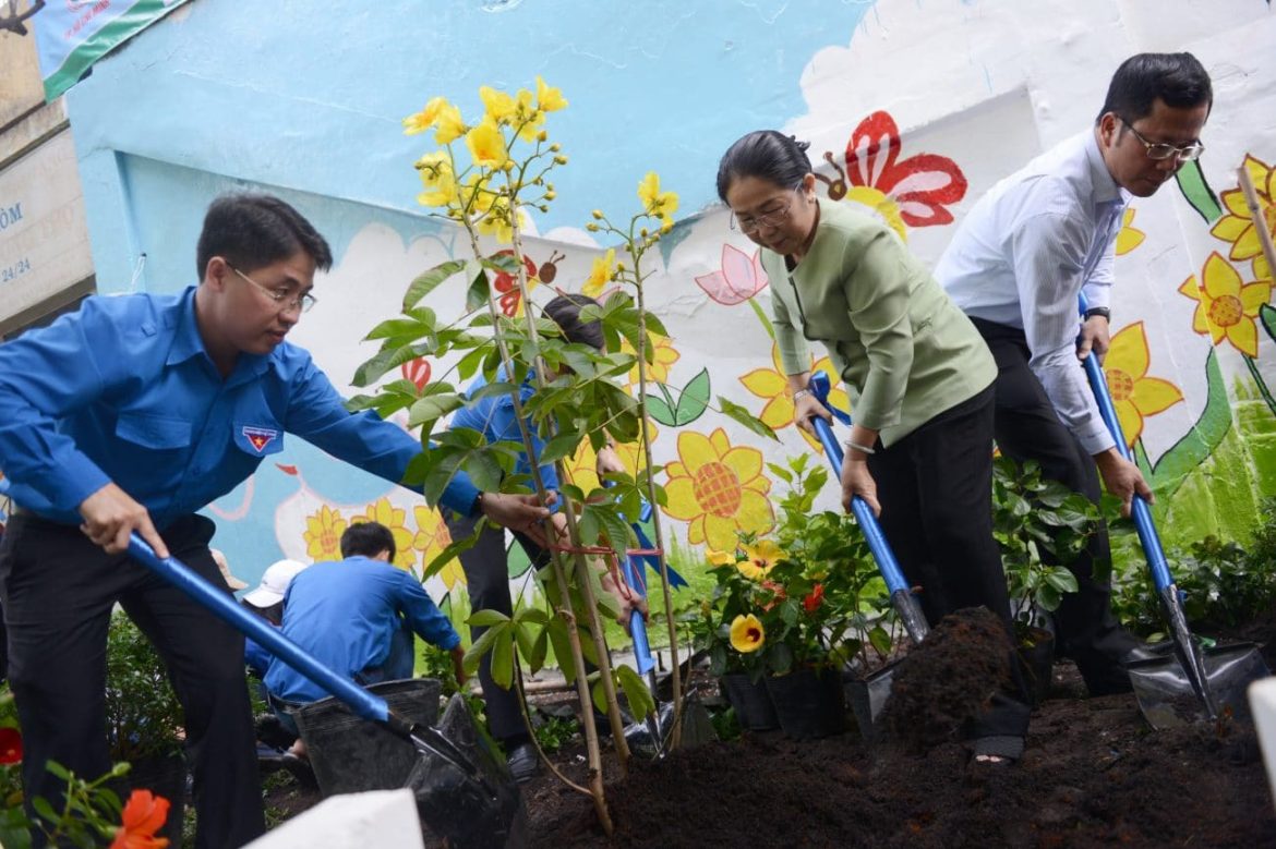 Quận đoàn 4 cũng phối hợp Đoàn khối dân chính đảng, Đoàn khối doanh nghiệp TP thực hiện công trình cải tạo không gian xanh tại chung cư Vĩnh Hội.